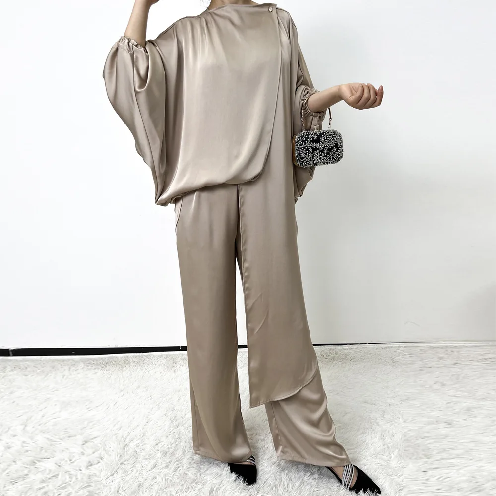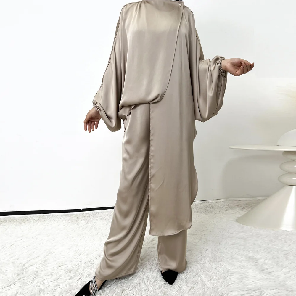 2pcs Muslim Women Irregular Tops Pants Set Dubai Abaya Dress Kaftan Tracksuit Islam Clothing Outfits Femme Musulmane Ensembles