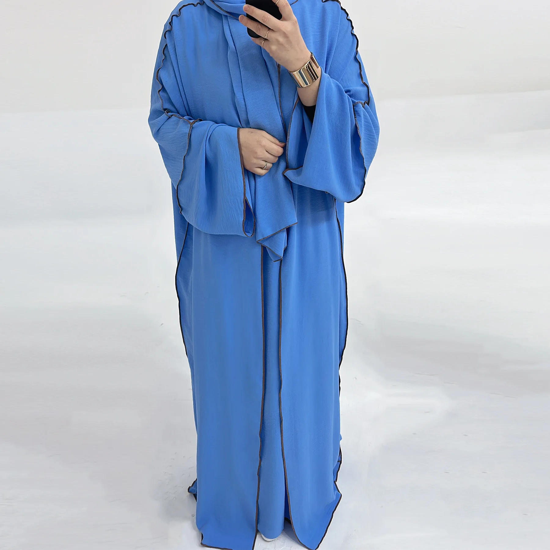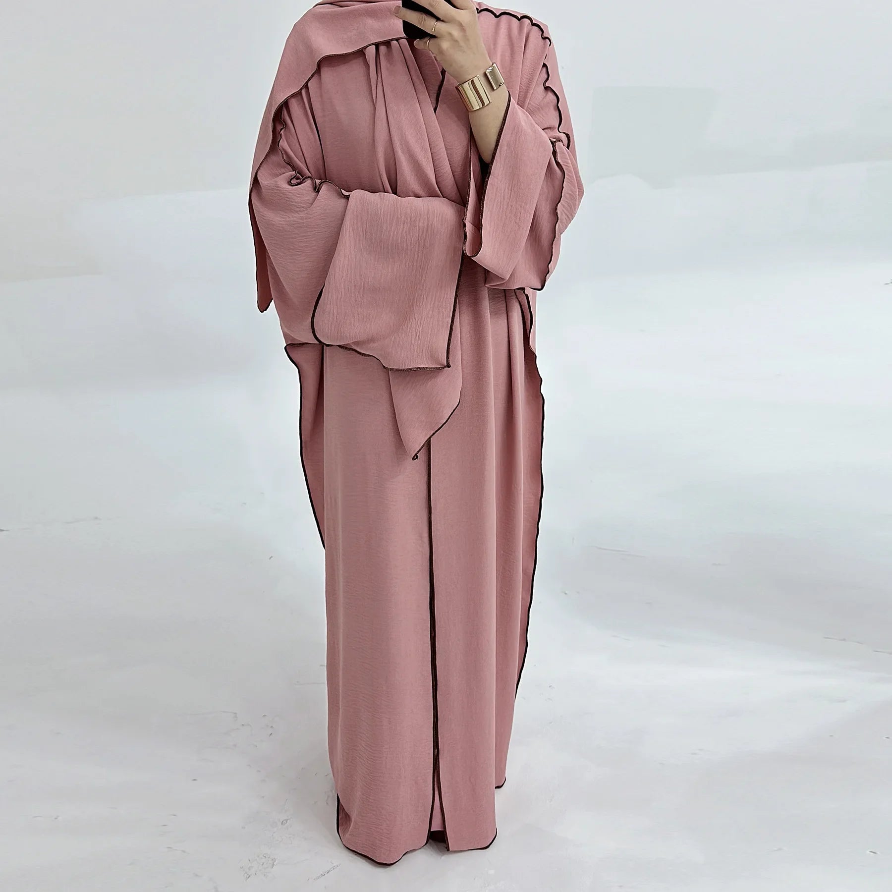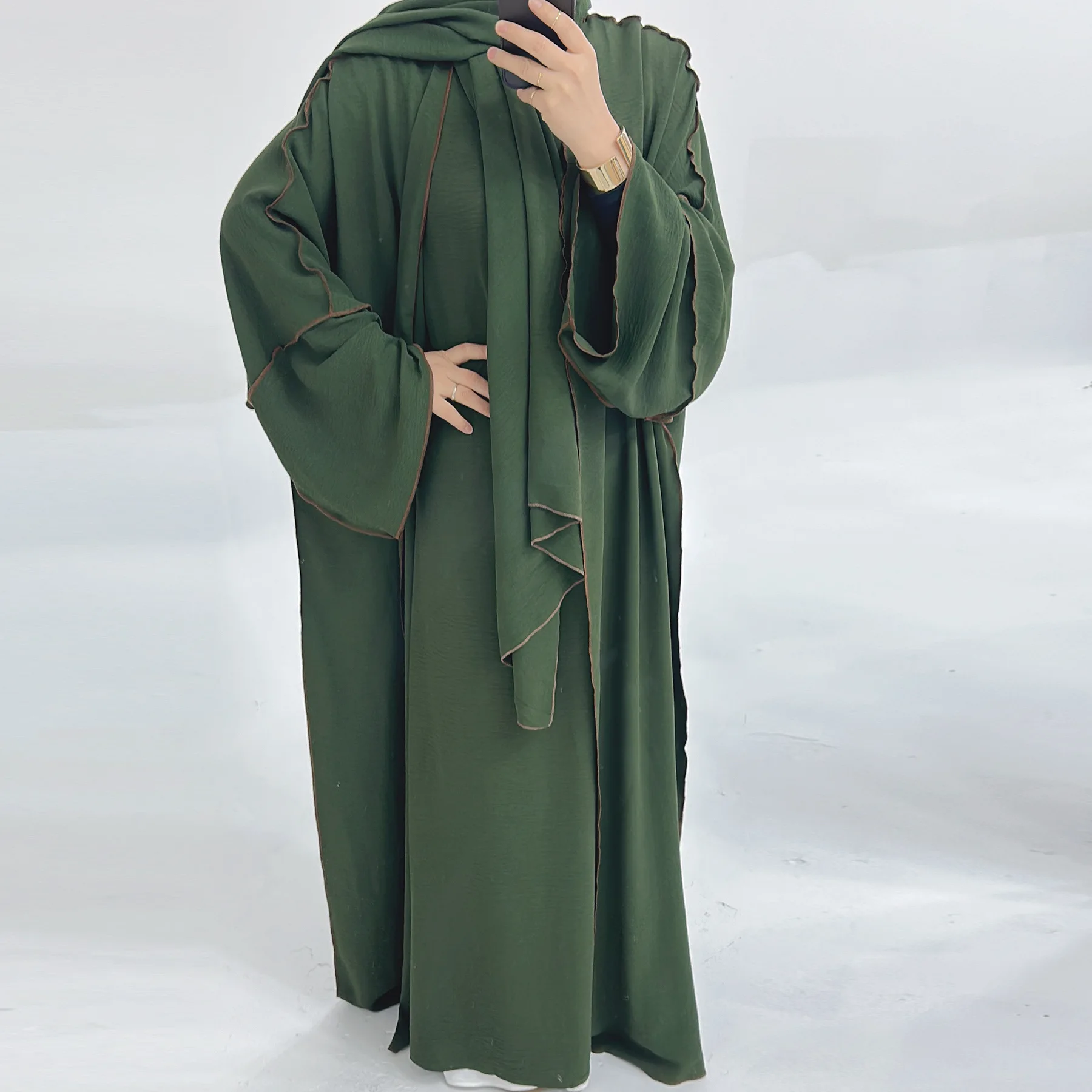 3PCS Modest Muslim Women Abaya Kimono Cardigan Hijab Scarf Maxi Dress Eid Ramadan Islamic Clothing Outfits Dubai Kaftan Djellaba