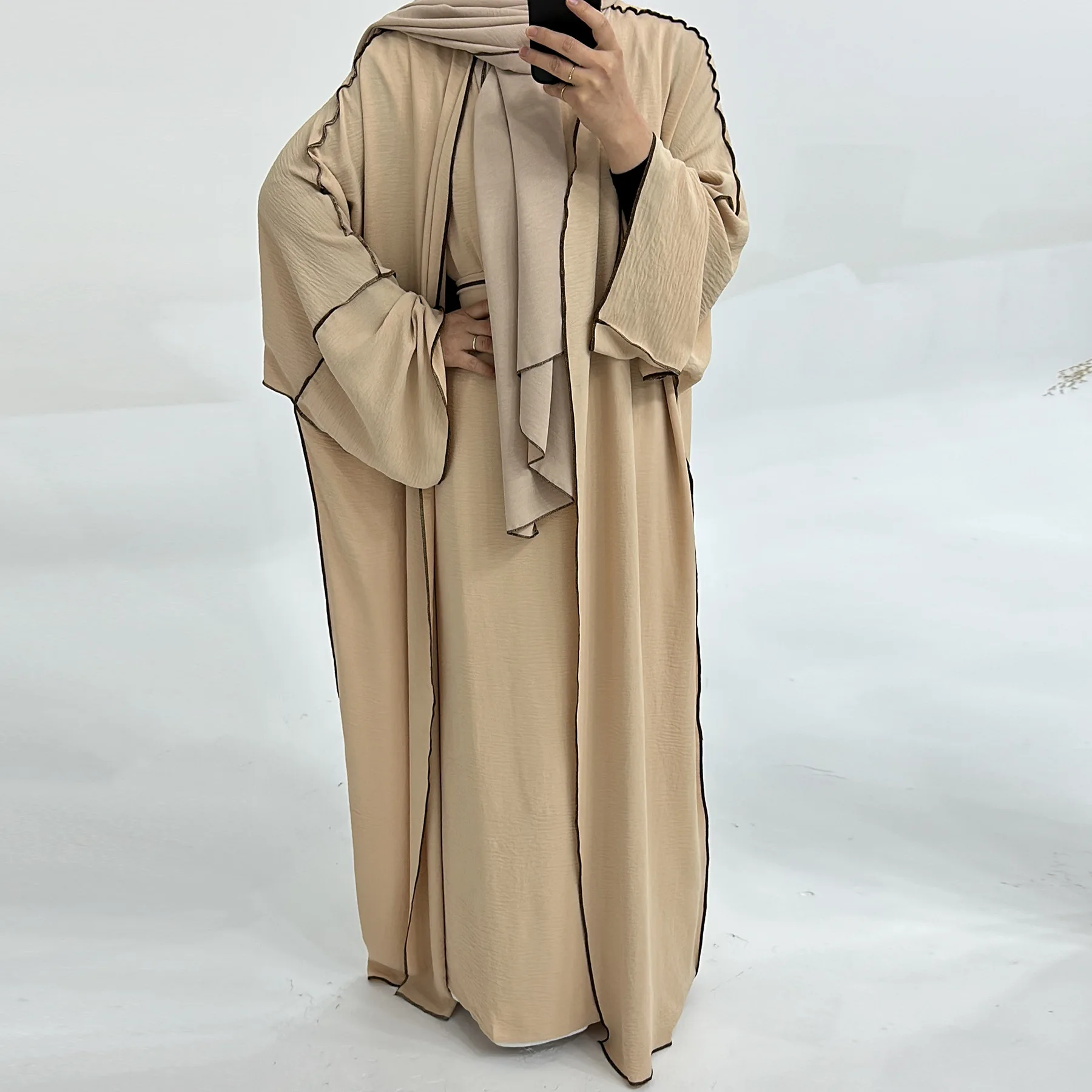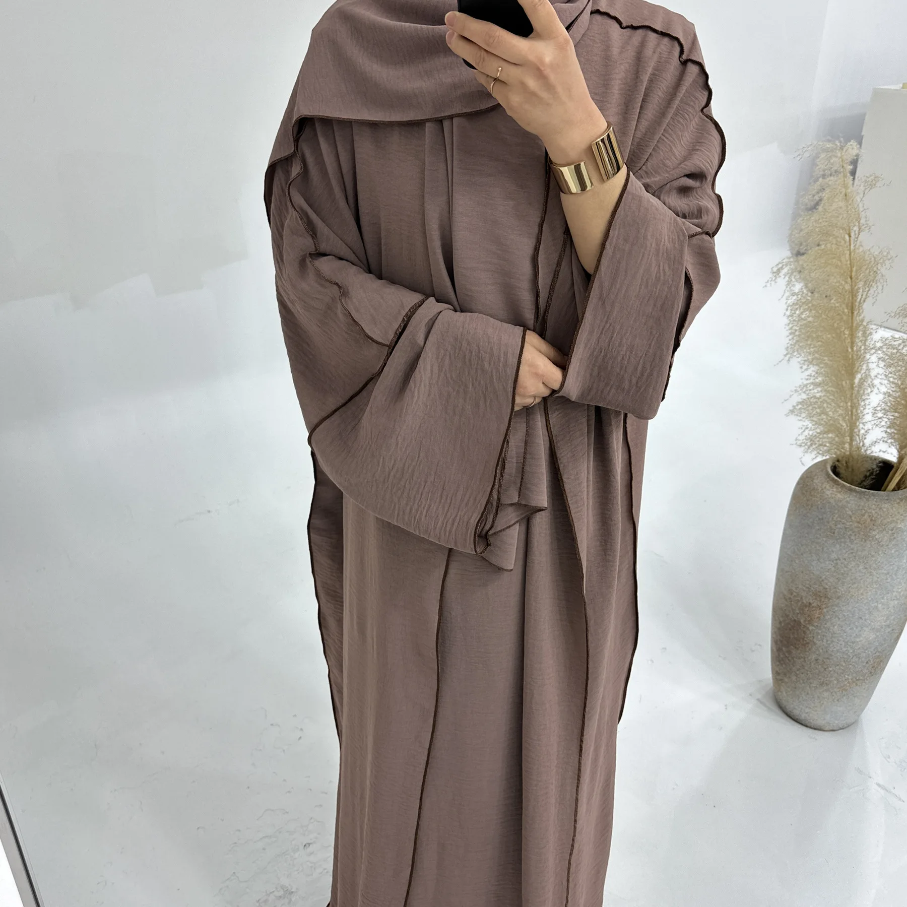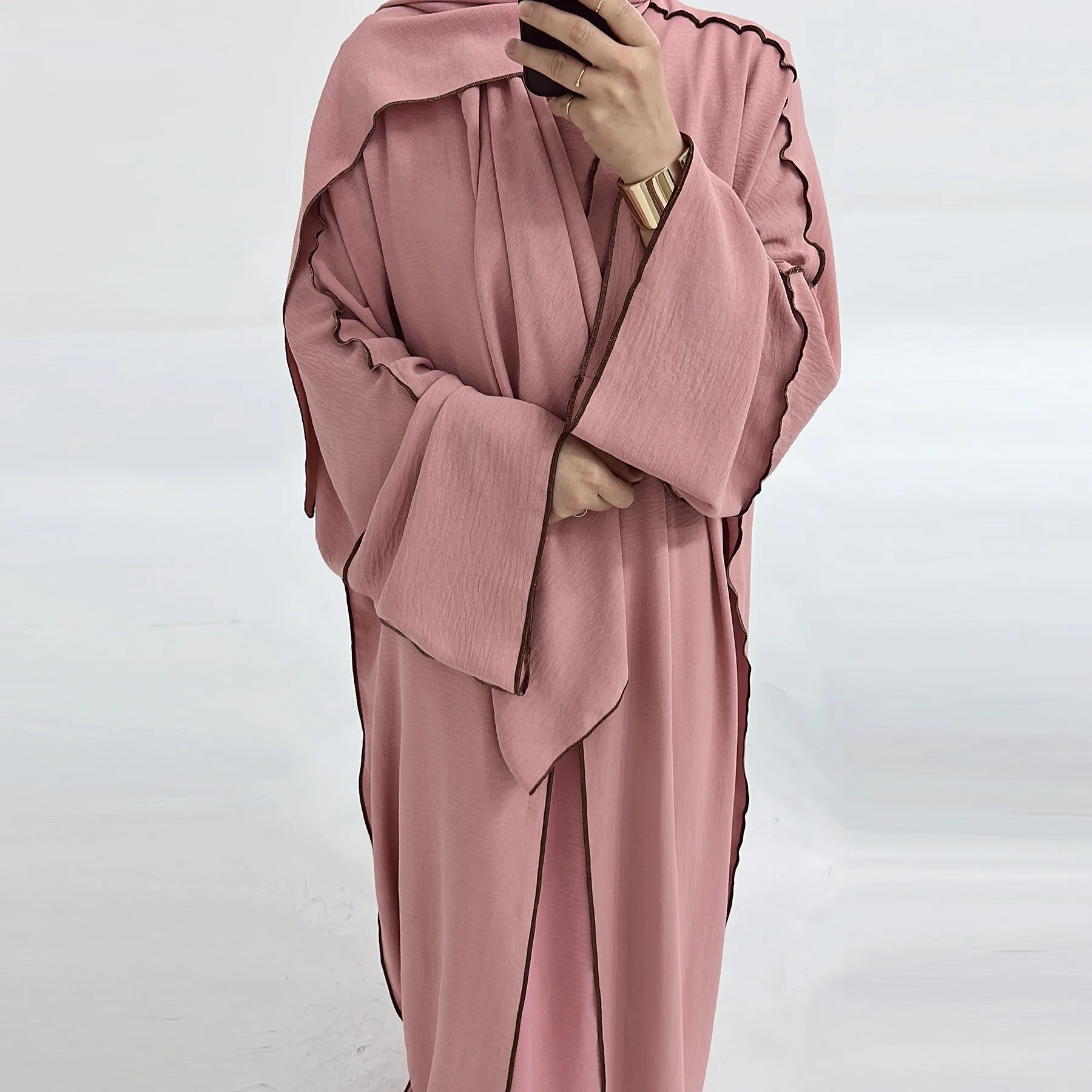3PCS Modest Muslim Women Abaya Kimono Cardigan Hijab Scarf Maxi Dress Eid Ramadan Islamic Clothing Outfits Dubai Kaftan Djellaba