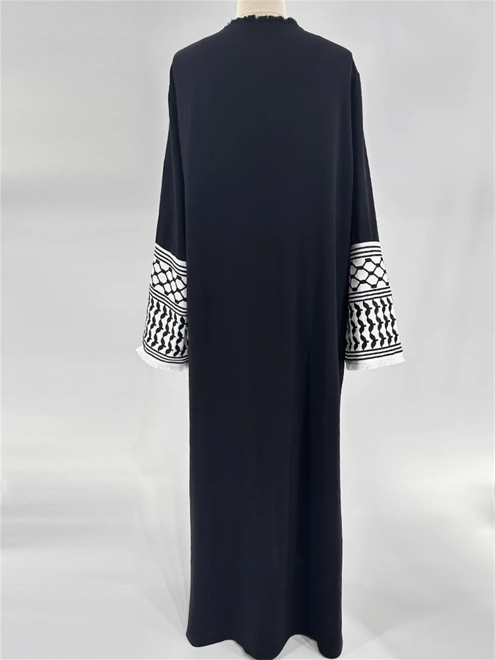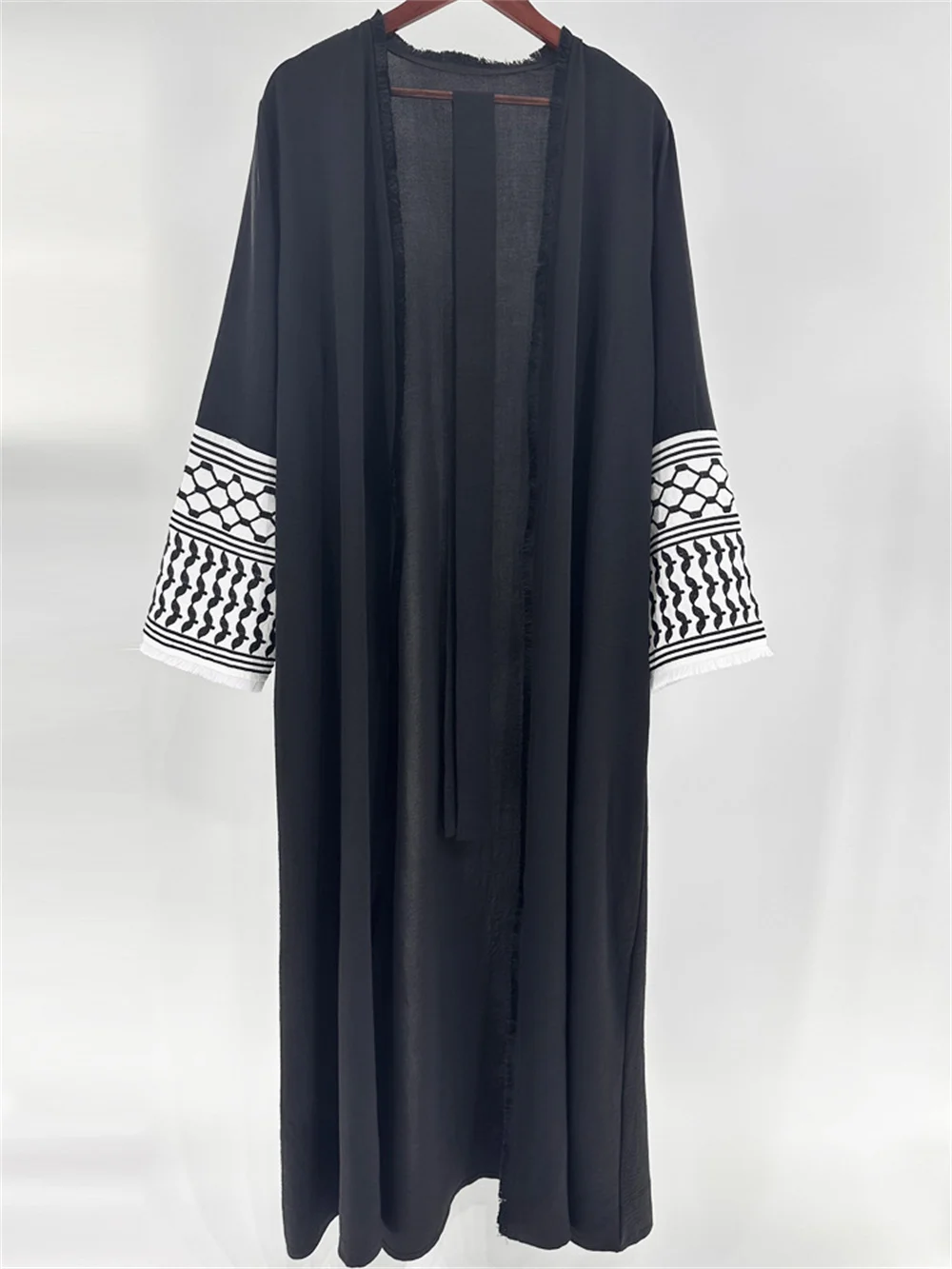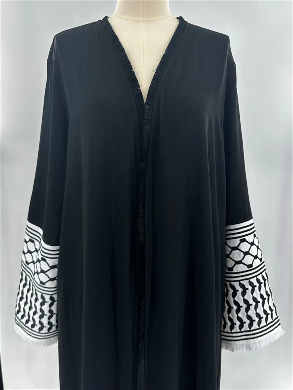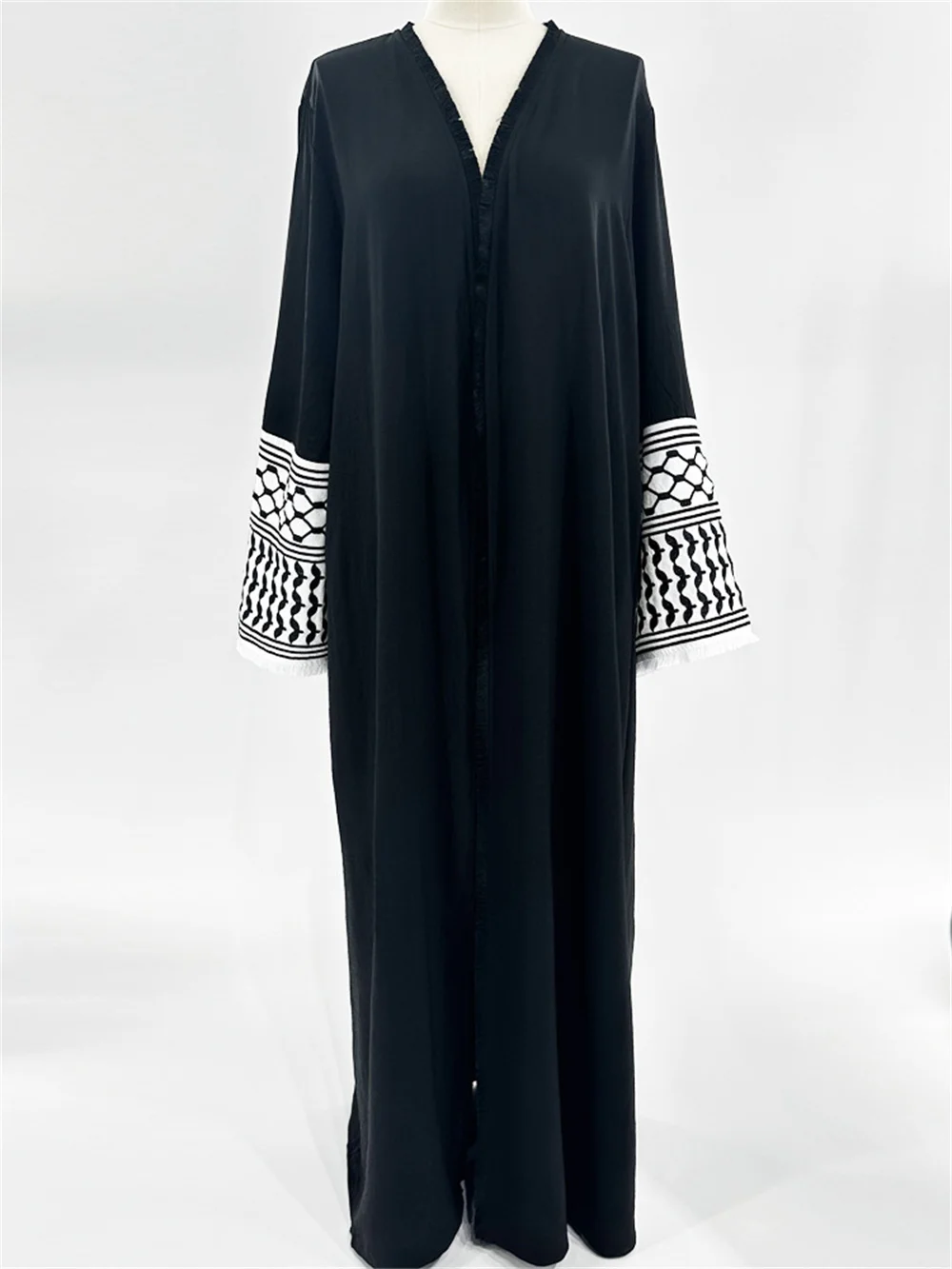 Black Open Front Abaya Muslim Long Sleeve Kimono Abayas Maxi Dress Women's Clothing Tassel Embroidery Out Kaftans Women Jilbabs