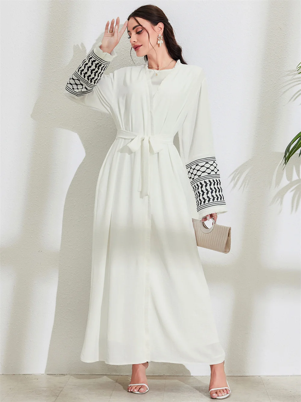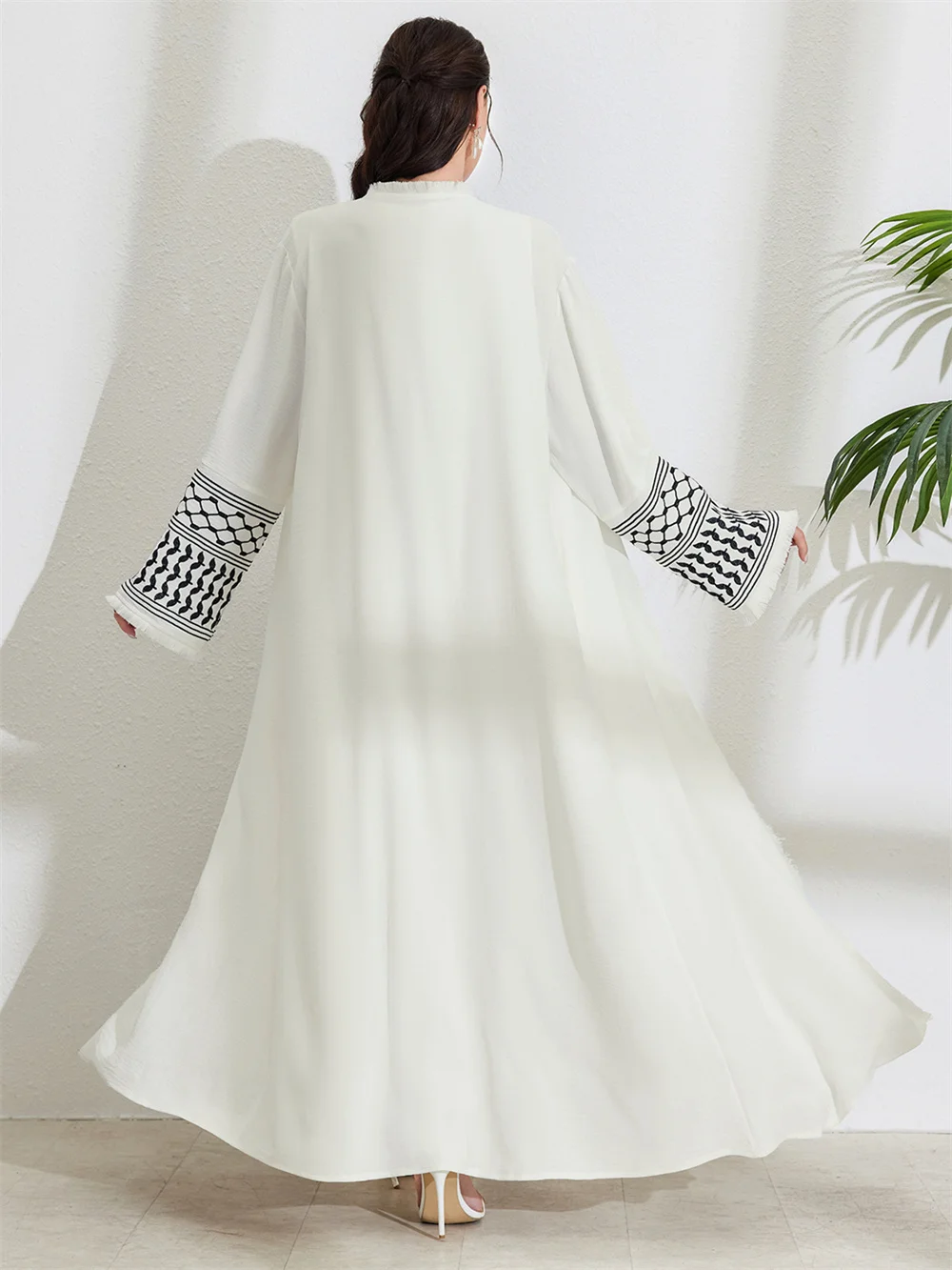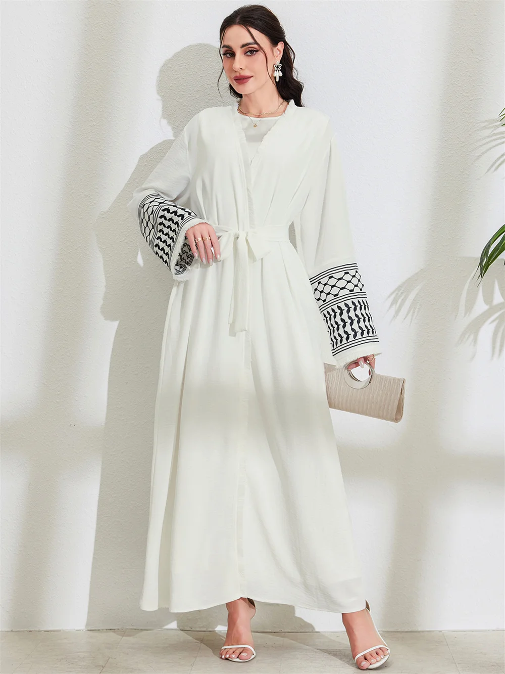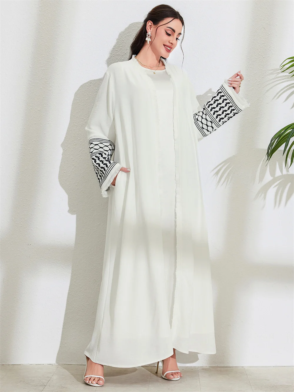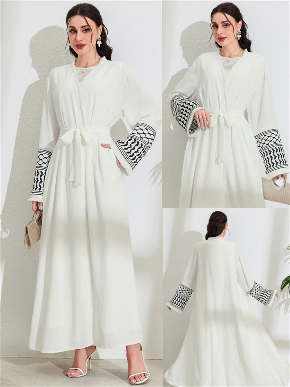 Black Open Front Abaya Muslim Long Sleeve Kimono Abayas Maxi Dress Women's Clothing Tassel Embroidery Out Kaftans Women Jilbabs