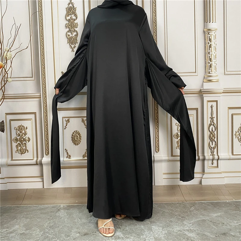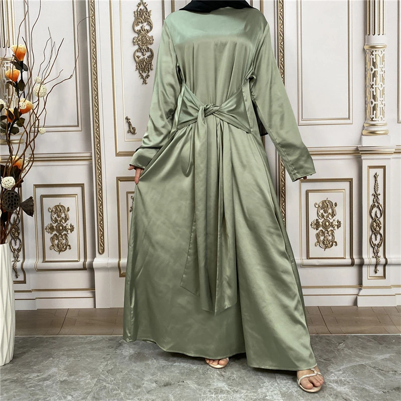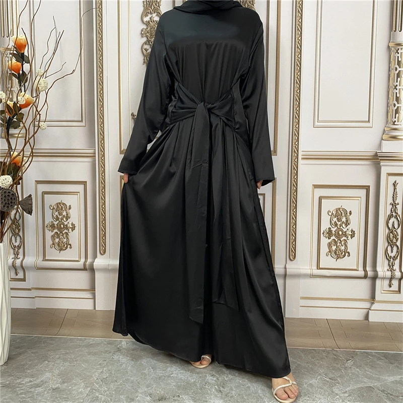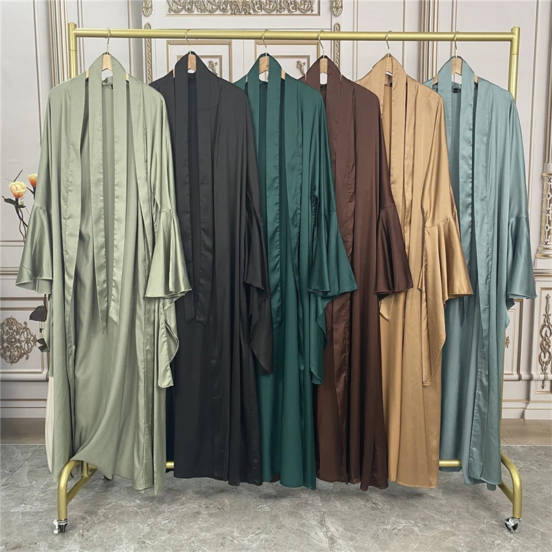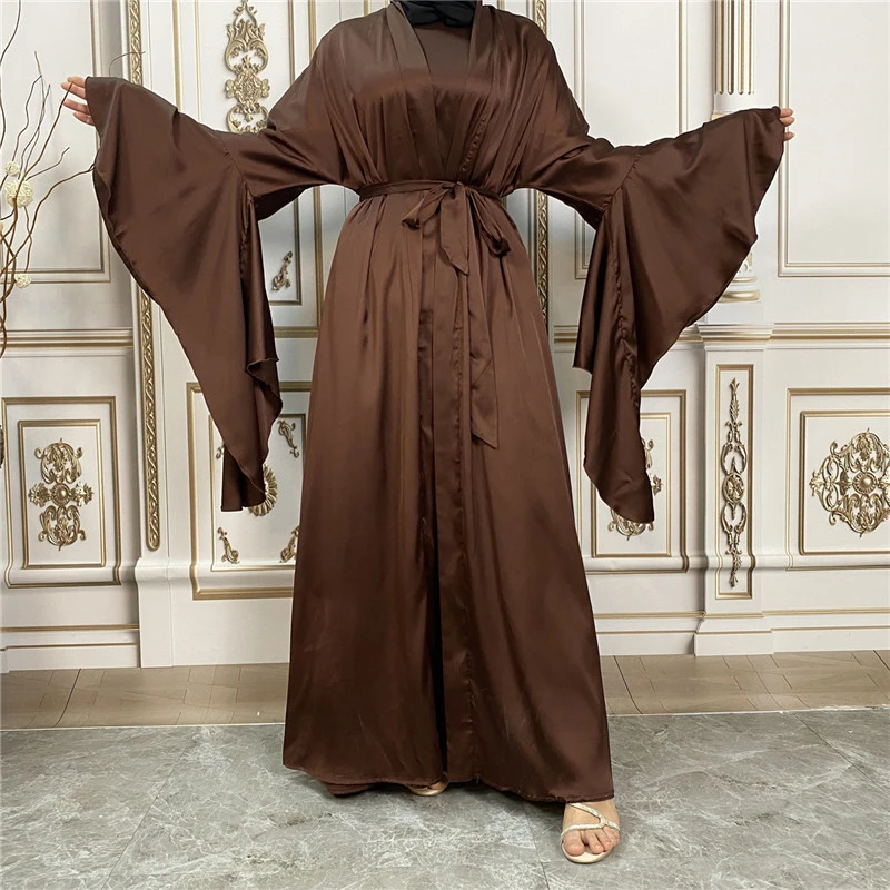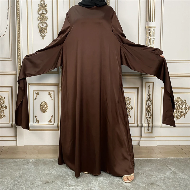 Shiny Satin Kimono Muslim Open Abayas for Women Dubai 2 Piece Set Dress Turkey Ramadan Kaftan Clothing Islamic Outfits Arab Gown
