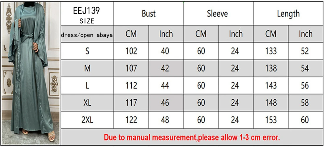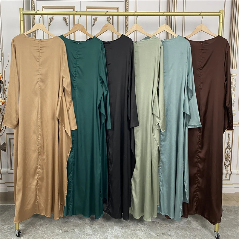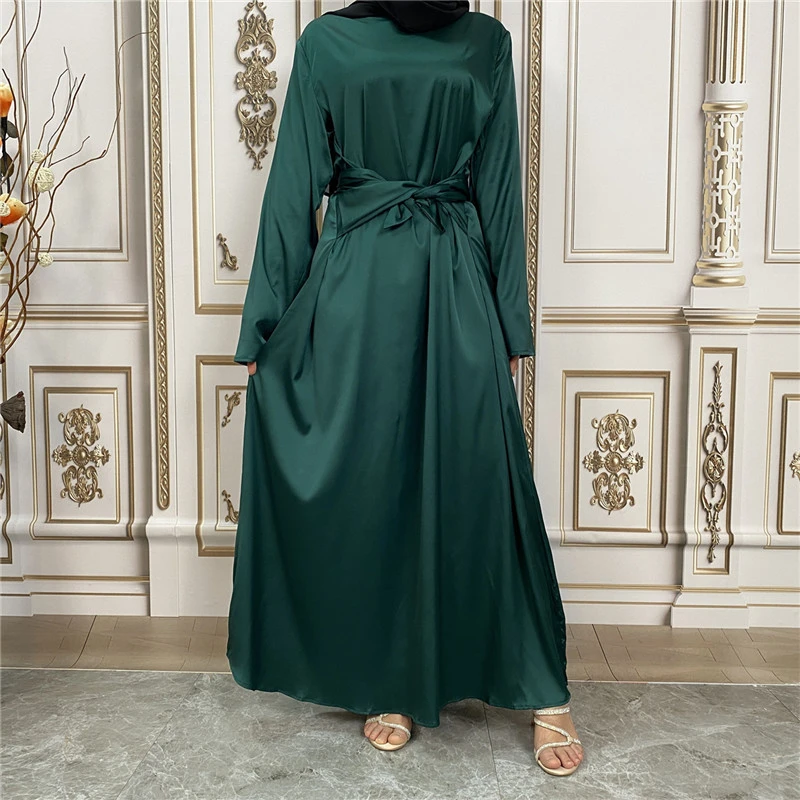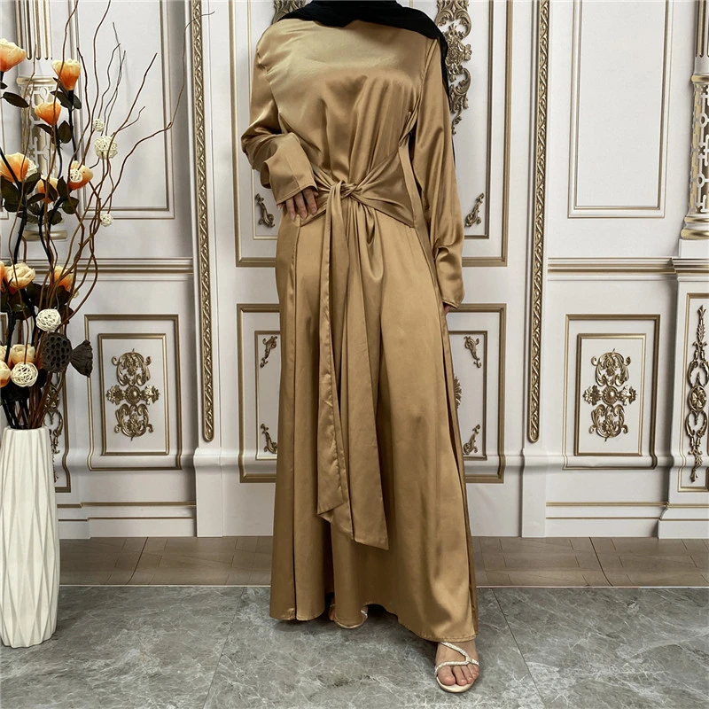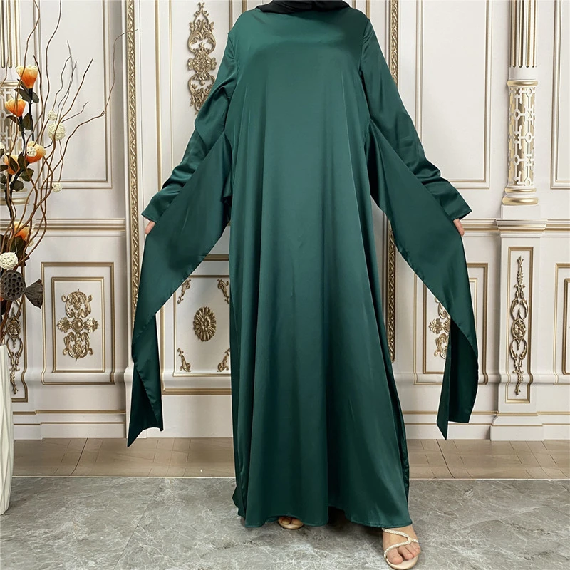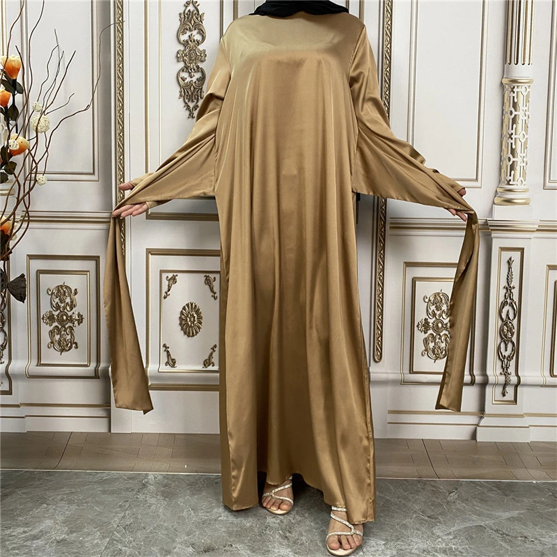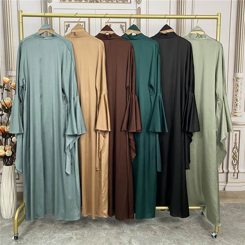 Shiny Satin Kimono Muslim Open Abayas for Women Dubai 2 Piece Set Dress Turkey Ramadan Kaftan Clothing Islamic Outfits Arab Gown